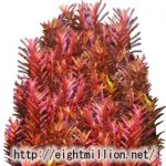 節間が短く茎が太く、丸い赤味をおびたオレンジ色の対生葉です。水中葉は非常に柔らかく、紅色の花びら状でやや長くなります。