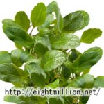 水槽内では互生する有茎草の形になり、低光量弱アルカリ性では卵型から円型に近い小さな葉を付けるようになります。