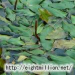 なお、9月ごろ、水面にある花穂にむかご(珠芽・肉芽)ができ、水中に沈下して越冬します。マルバオモダカの、和名の語源は葉身の形に由来します。