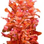 細い茎で茎下部の葉は緑色をしていますが、茎の上方に向けて赤紫がかった紅色を深めていきます。